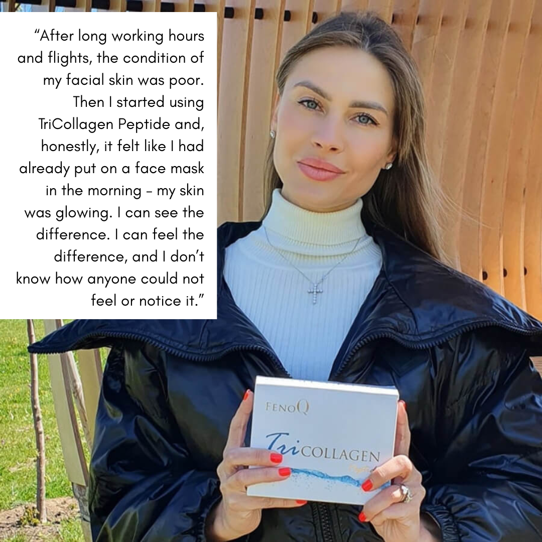 FenoQ TriCollagen Peptide is the discovery of science to preserve beauty and youth. Contains the most important and essential two types of collagen peptides, which quickly and effectively help to give the hair weight and shine, elasticity and moisture to the skin, and firmness to the nails.