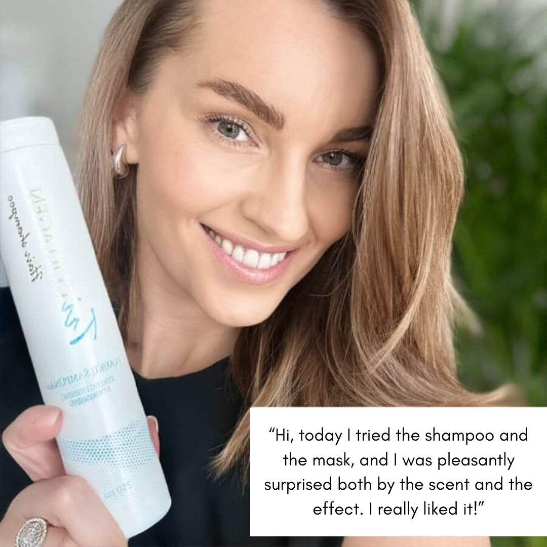 A green tea and seaweed cocktail for a clean scalp and healthy, vibrant hair! This strengthening and nourishing shampoo is enriched with collagen peptides, spirulina algae, and green tea extract, and is suitable for all hair types. Active ingredients help remove impurities while conditioning and nourishing the hair structure, leaving your hair healthy-looking, hydrated, and shiny.